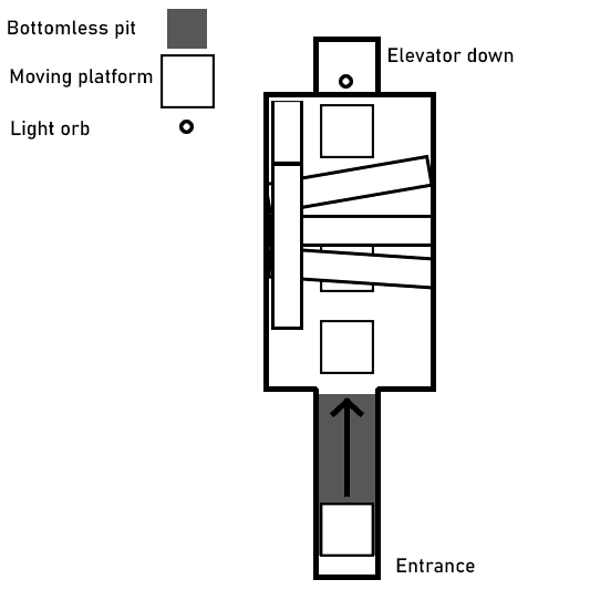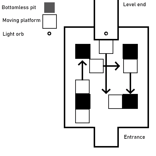 The temple section introduces moving platforms that respond to player input, gradually layering complexity by allowing platforms to collide and interact with one another. By the end of the level, the decision was made to have players deposit collected orbs before returning to the hub, ensuring consistency across all levels.